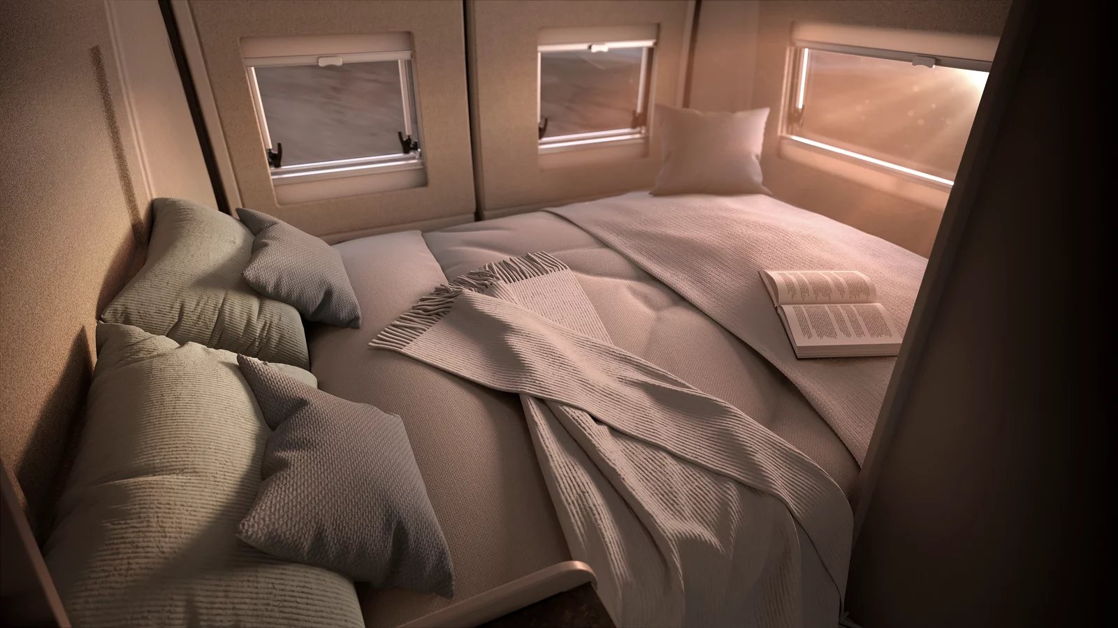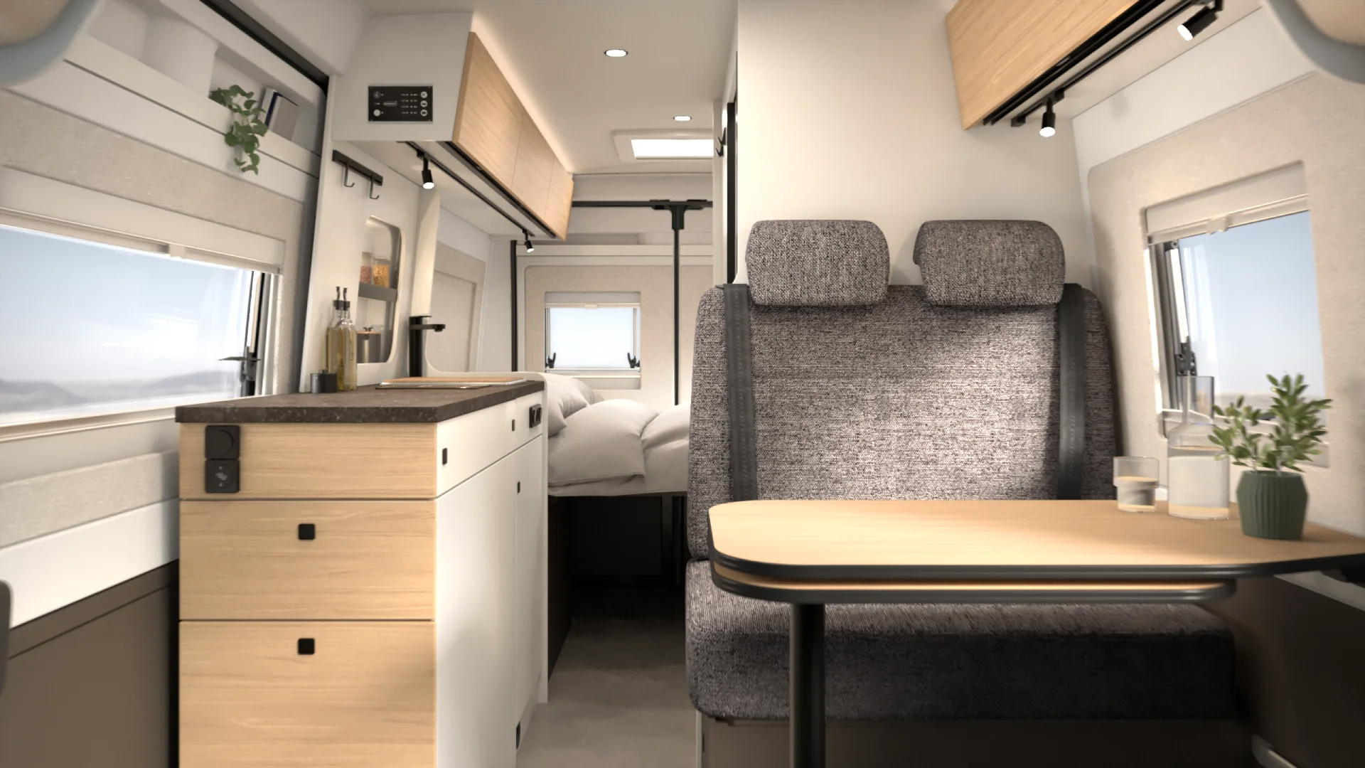 Innvendig belysning og smart plassutnyttelse gjør CAMP AUTOMATIC til et perfekt valg for par som setter pris på fleksibilitet og brukervennlighet på reisen.