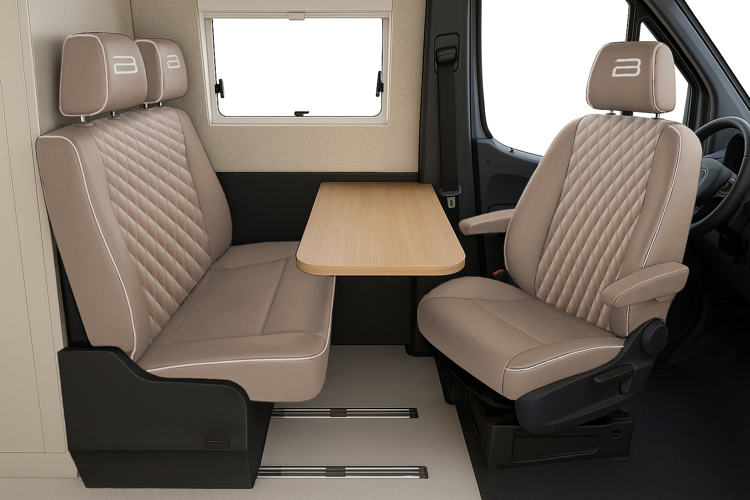 Innvendig finner du et smart, flyttbart baderomskonsept, som gir mulighet for to forskjellige sengeoppsett. Enten du foretrekker separate soveplasser eller en åpen planløsning, tilpasser VAN 4×4 AUTOMATIC seg til din reisestil.